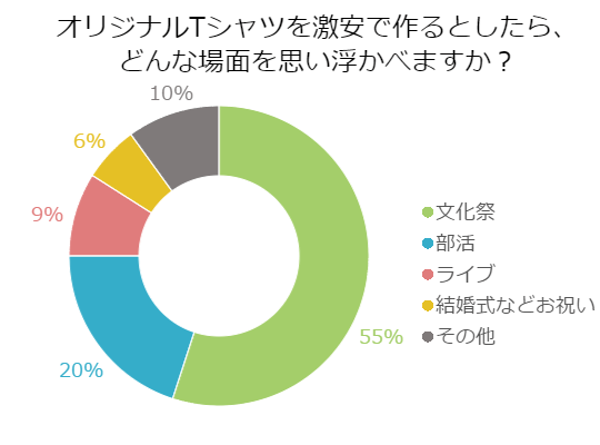 激安のオリジナルtシャツを作るとしたら、皆さんはどんなシチュエーションを思い浮かべるのでしょうか。アンケートをとって意見を聞いてみました。