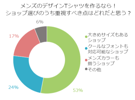 今回のアンケートでは、メンズのデザインTシャツを依頼する為に何に注意してショップ選びをするのかうかがってみました。